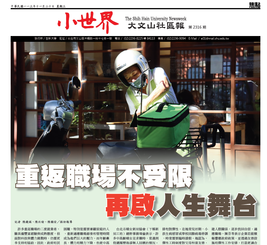 - 許多重返職場的二度就業者,雖具備豐富經驗與成熟態度,但面對科技與體力挑戰時,仍需更多支持和協助,因此,政府和民間機構透過政策獎勵和就業培訓等方式,幫助他們開啟職涯「第二春」。其中,許多女性在不同的人生階段選擇重返職場,更在其中發揮所長,這些故事是他們自我突破的縮影,同時也為全齡友善職場注入新啟發。