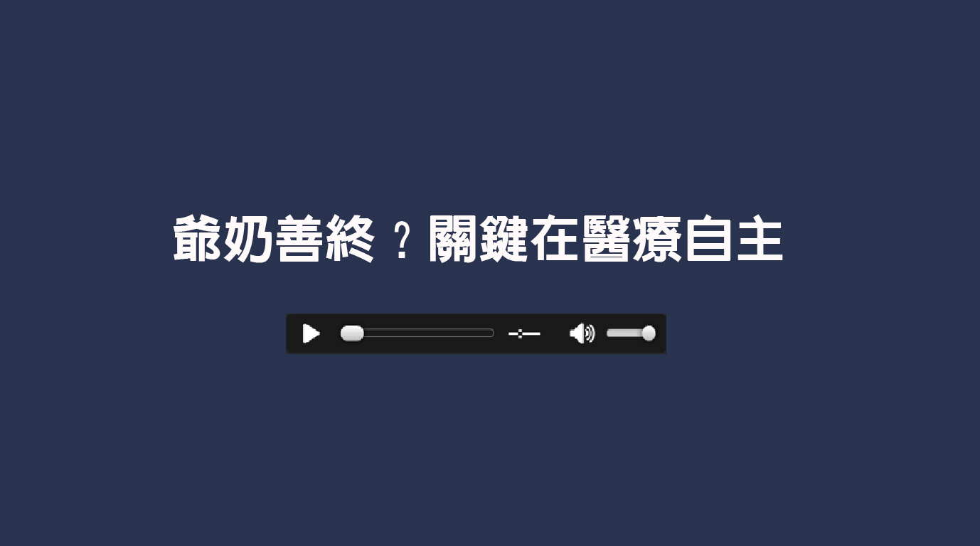 - 2024/12/04瓊瑤離世,再次掀起善終議題的討論,而今年又適逢「病人自主權利法」五週年,因而訪問爺奶對善終的想法、以及對「病人自主權利法」的認識情況;並且從不同面向介紹「病人自主權利法」,讓高齡者知道臺灣合法善終的方式,以及醫療自主的權利,並且鼓勵提前與家人討論臨終醫療方式,守護告別時刻的生命品質與尊嚴。
